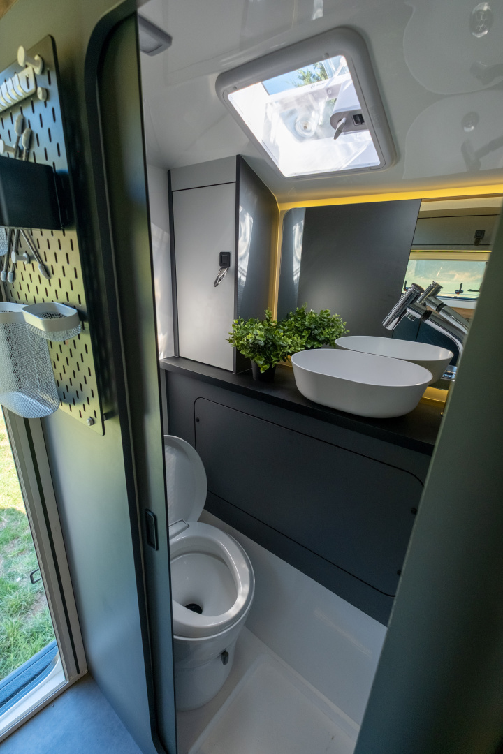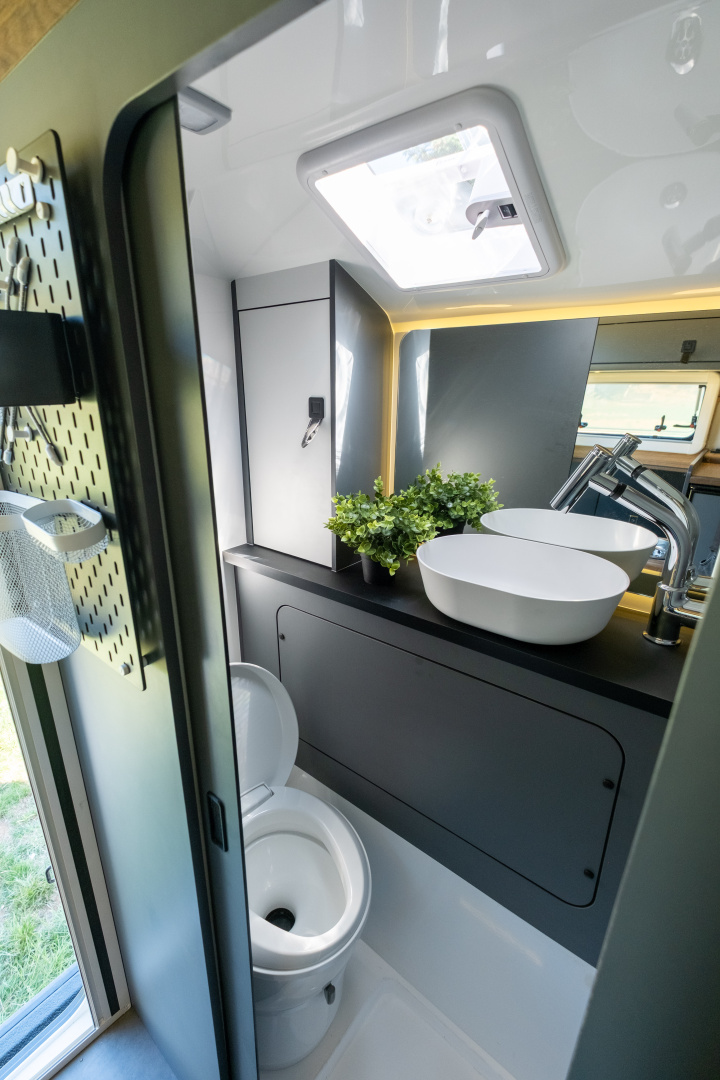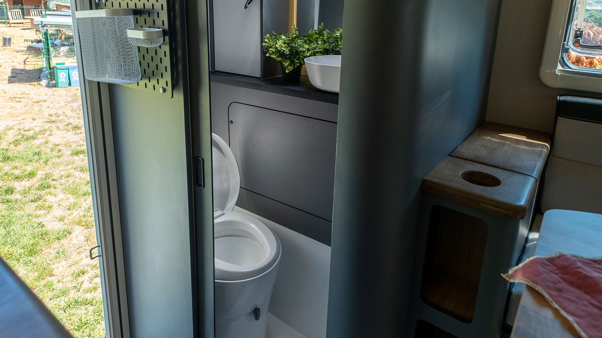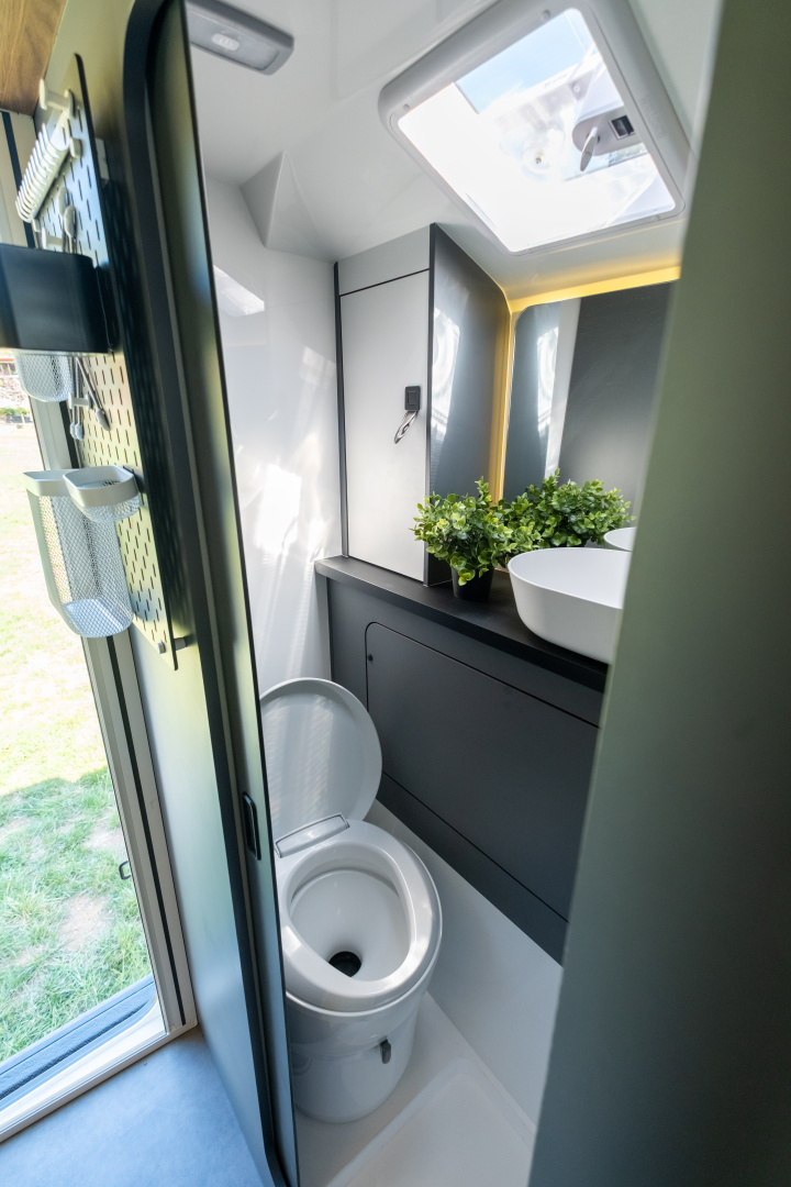 🔹 Kompletní koupelna s WC – integrovaná koupelna zahrnuje Thetford kazetovou toaletu, sprchový kout a odvětrávání, což přináší maximální komfort při dlouhodobých cestách.