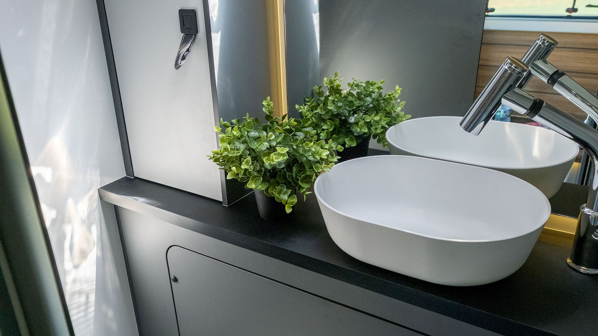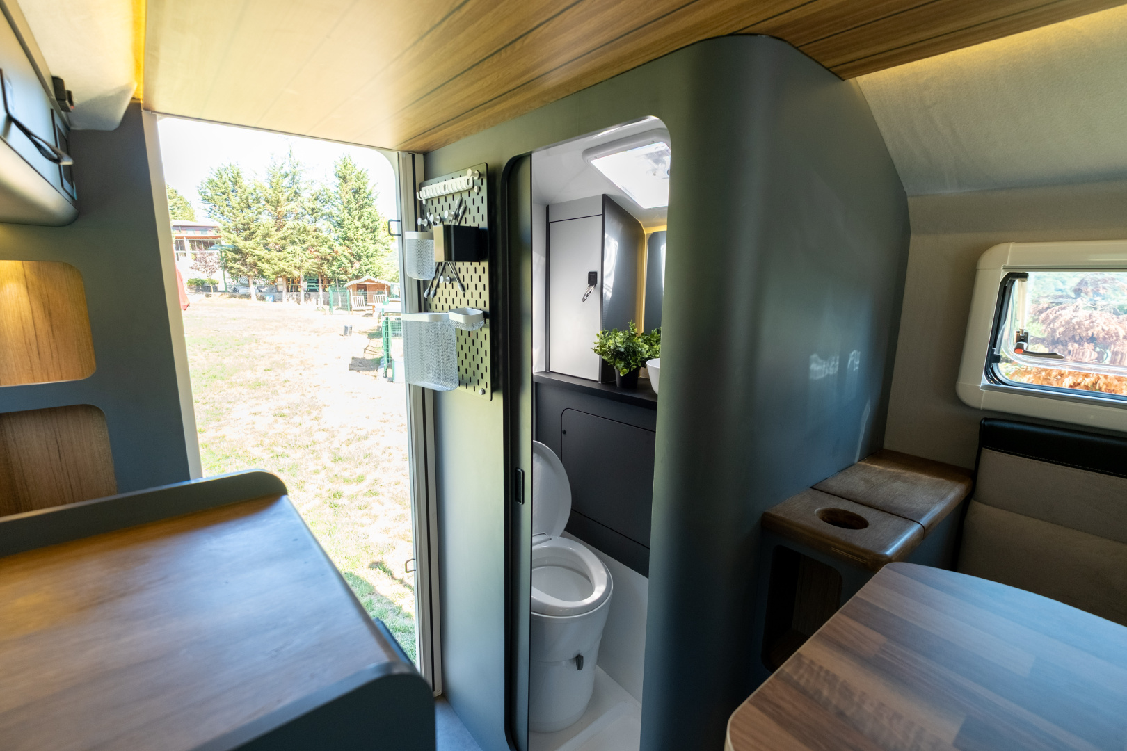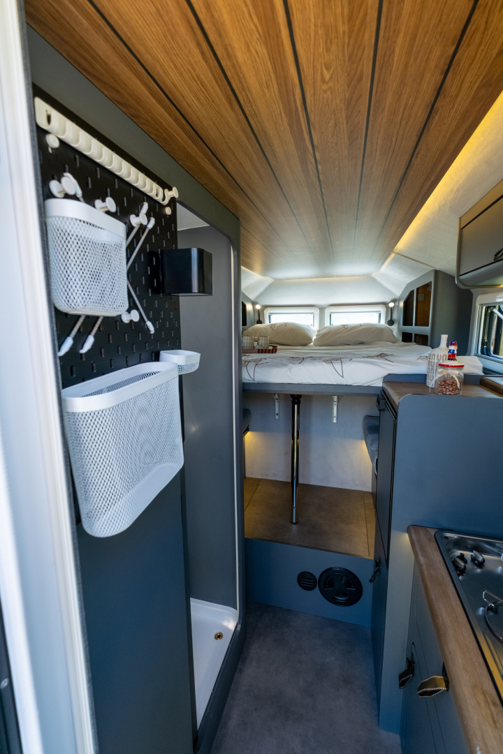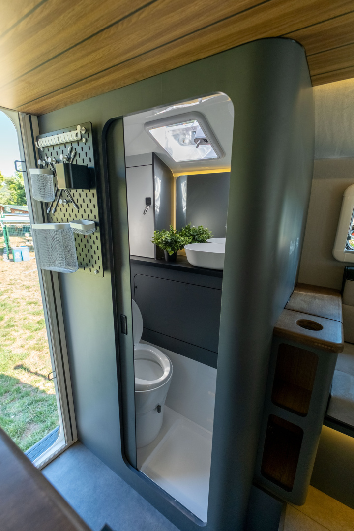🔹 Kompletní koupelna s WC – integrovaná koupelna zahrnuje Thetford kazetovou toaletu, sprchový kout a odvětrávání, což přináší maximální komfort při dlouhodobých cestách.