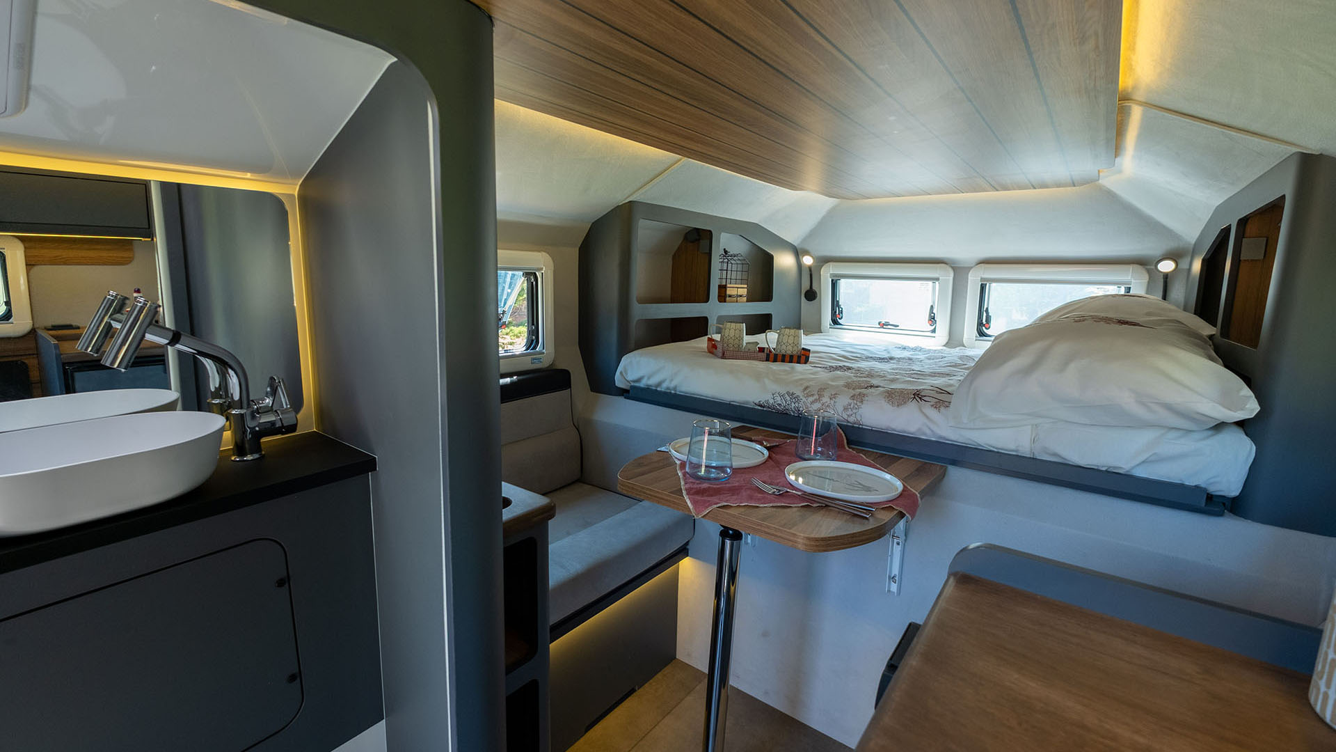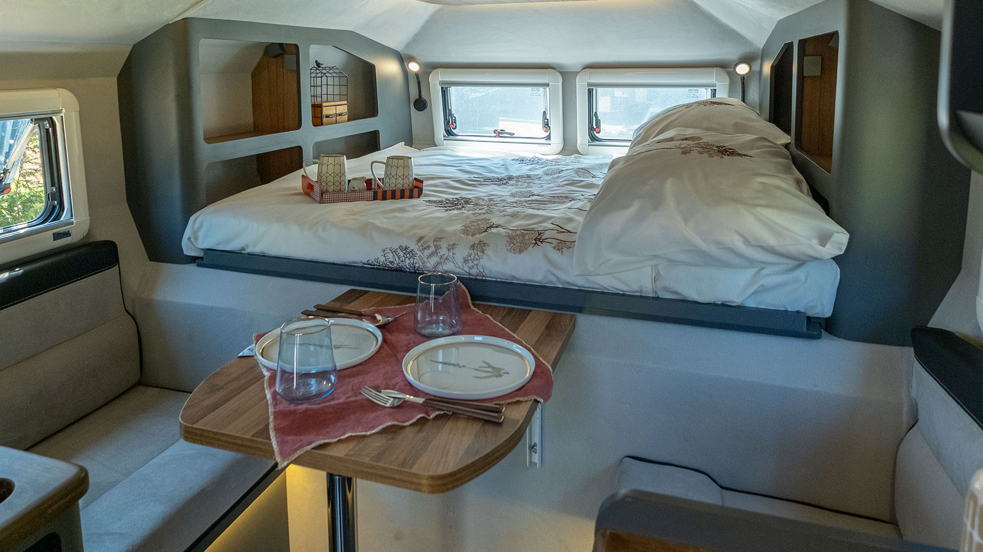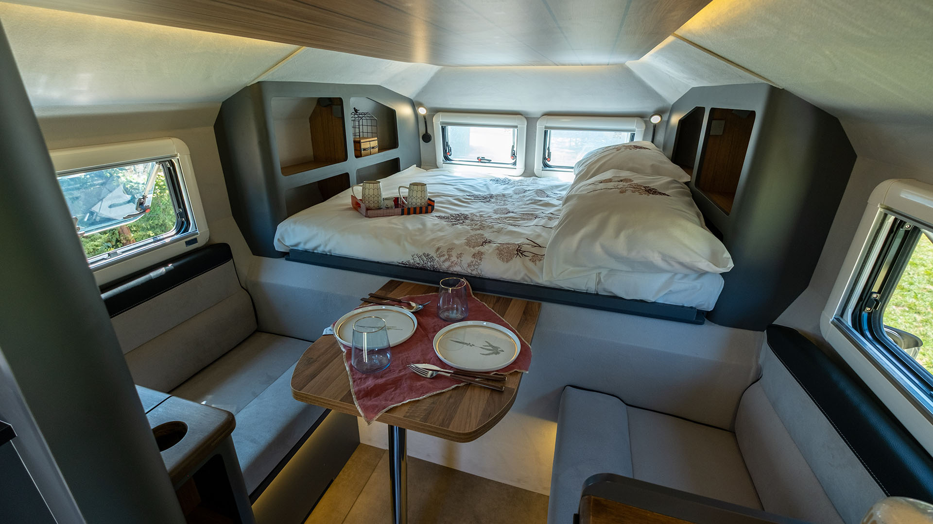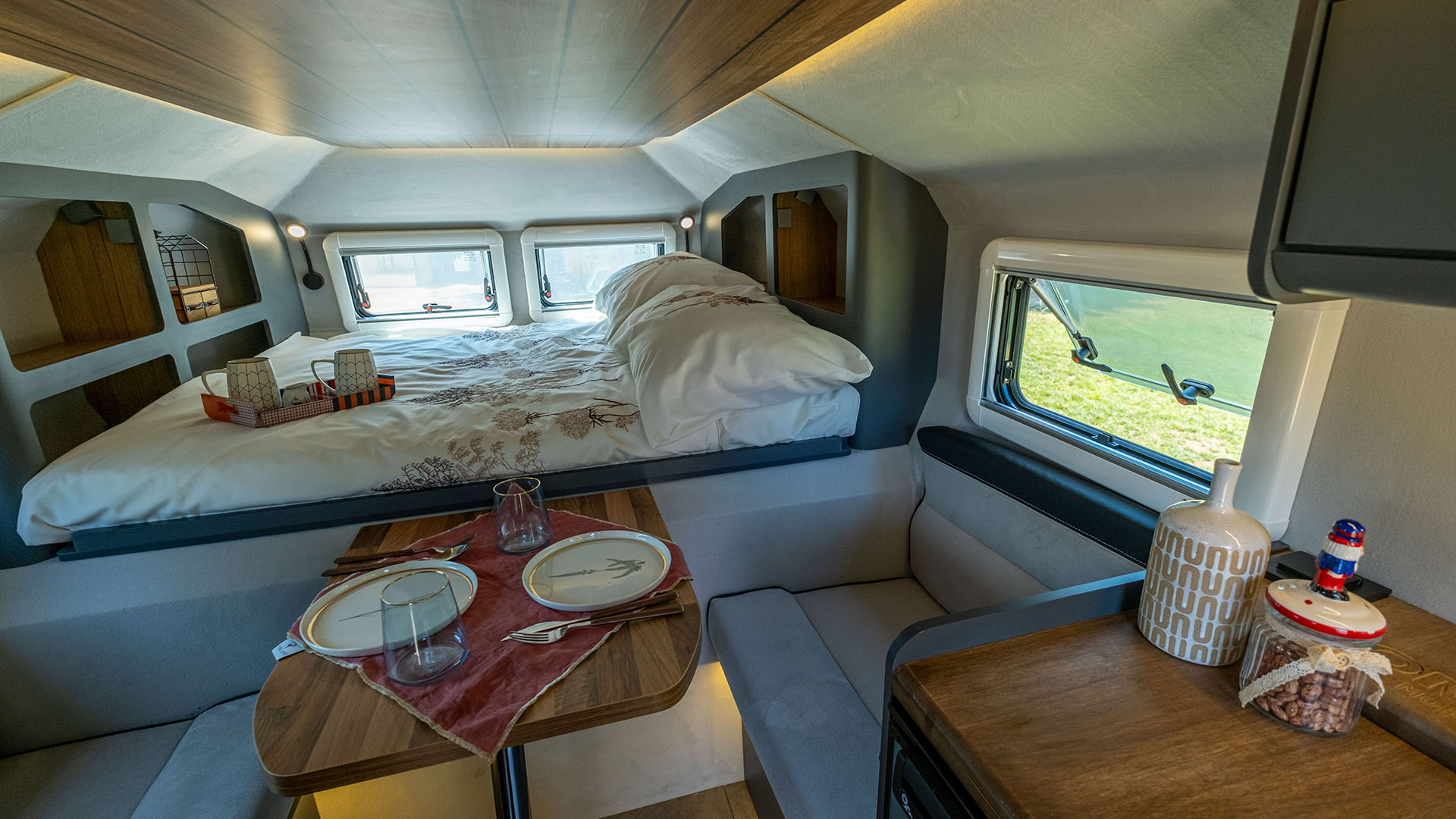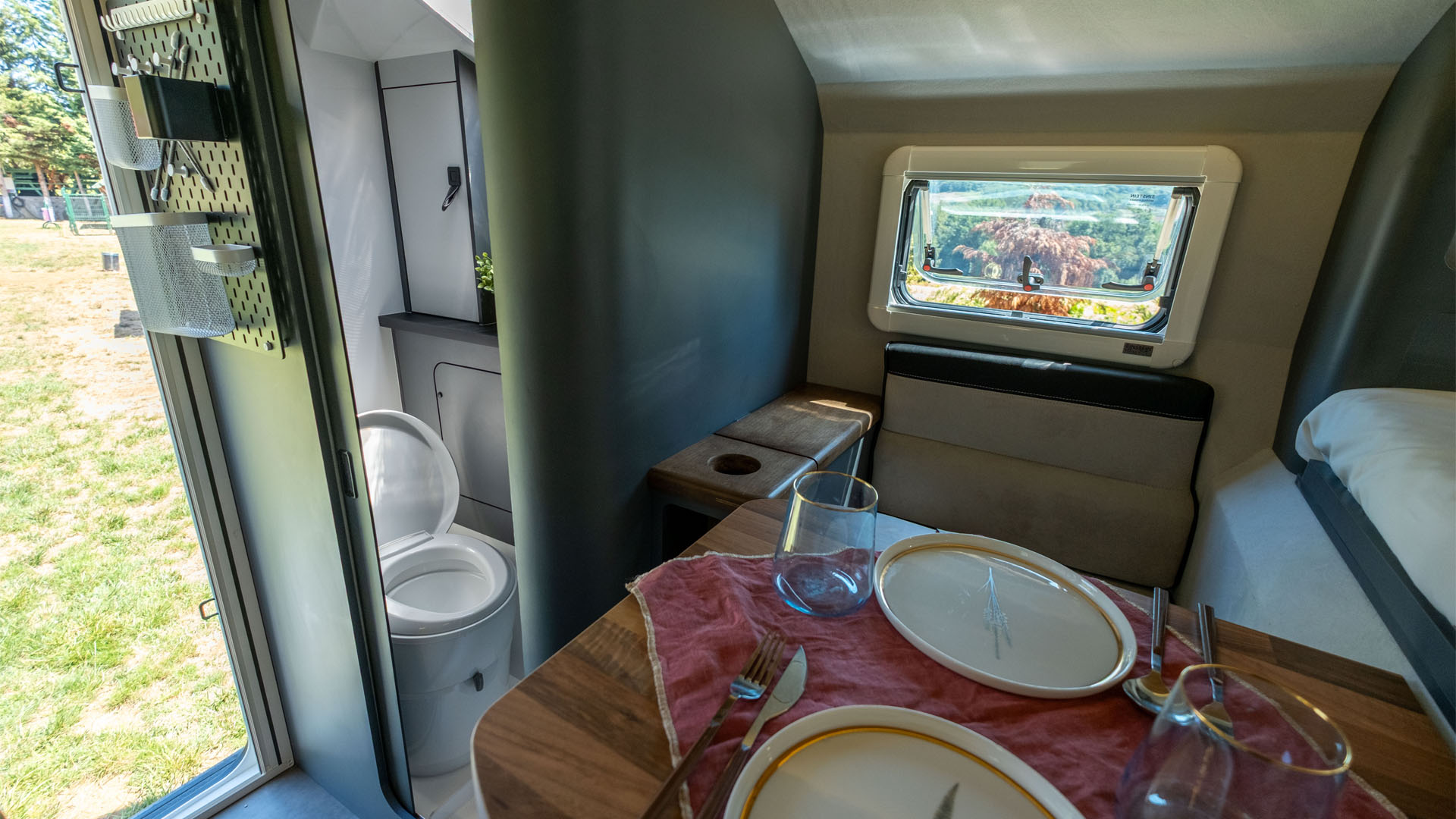 ✔ Komfortní ubytování pro celou rodinu – možnost rozšíření až pro 5 osob se střešním stanem.