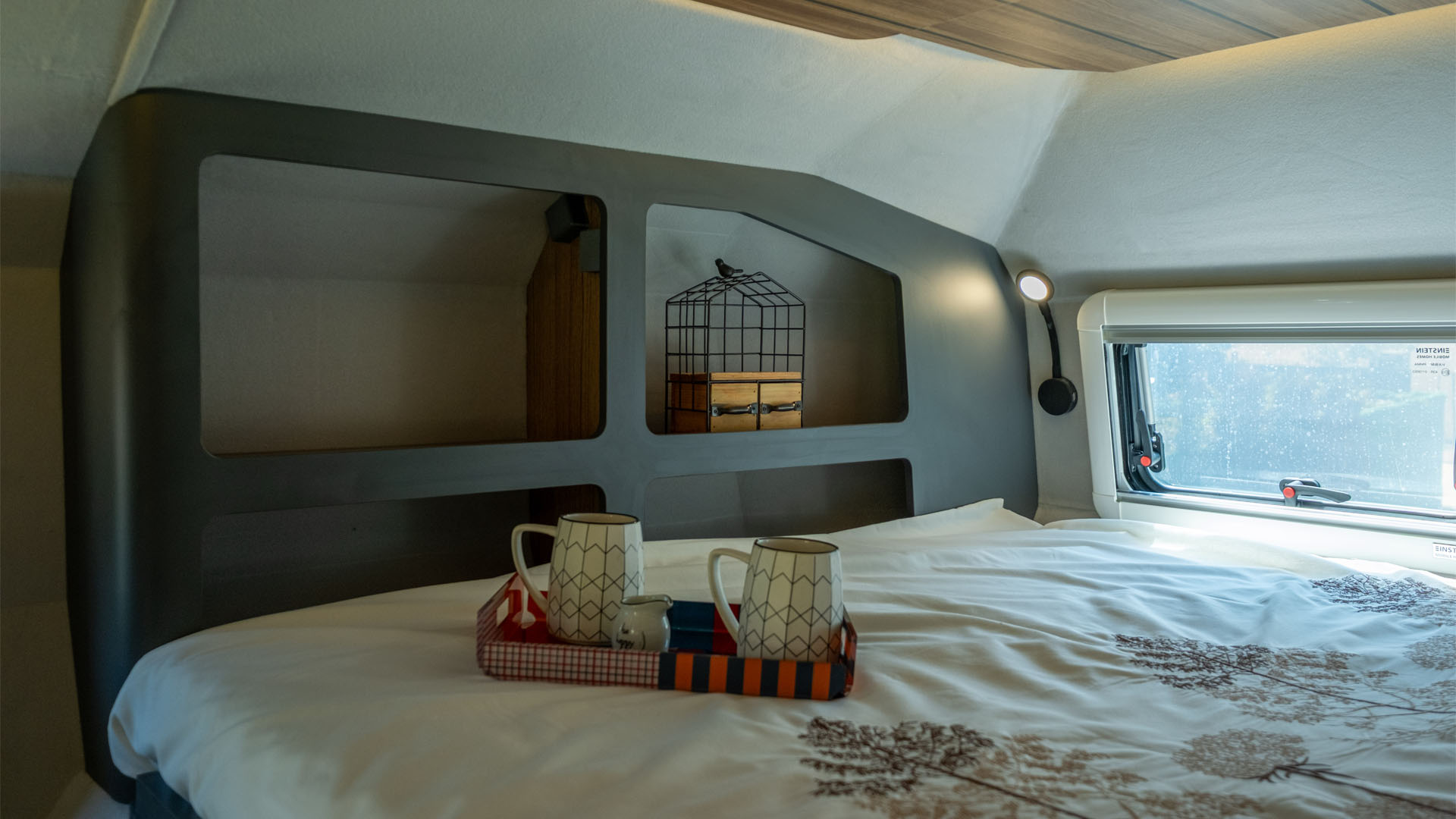 ✔ Plně vybavená koupelna – integrovaná koupelna se splachovací toaletou Thetford s otočnou mísou.